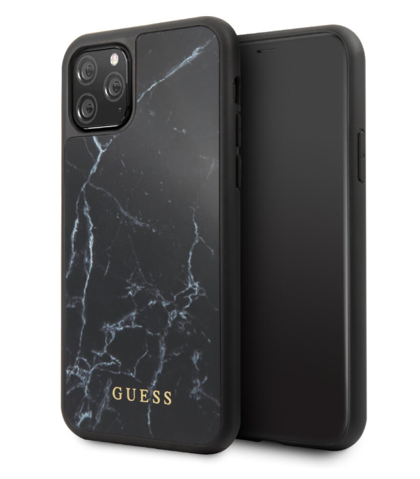 Стильный чехол выполнен под чёрный мрамор известным брендом по всему миру Guess, специально для iPhone 11 Pro. Аксессуар с лёгкостью снимается и одевается.